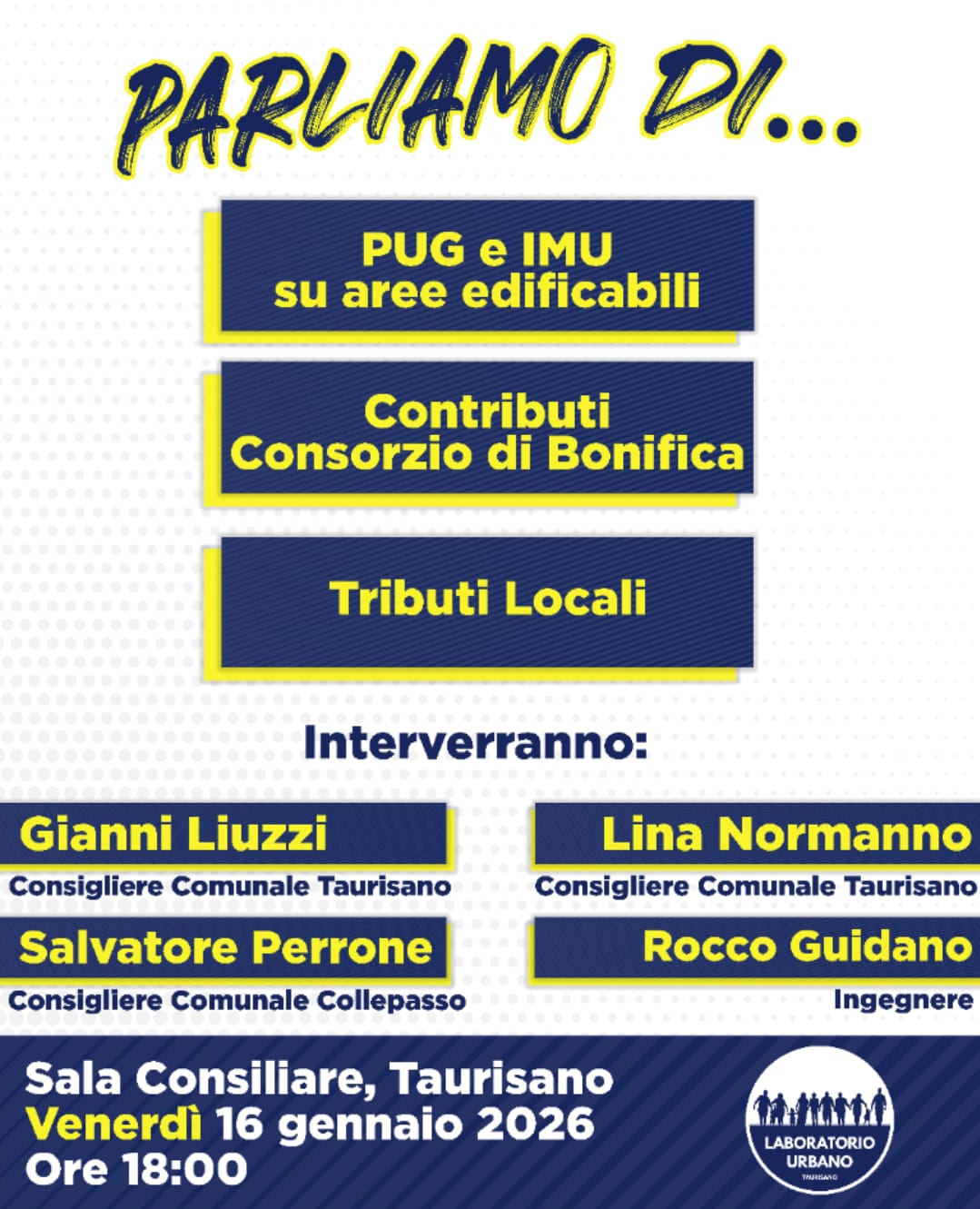 Oggi 16 gennaio 2026 Incontro Pubblico nella sala consiliare